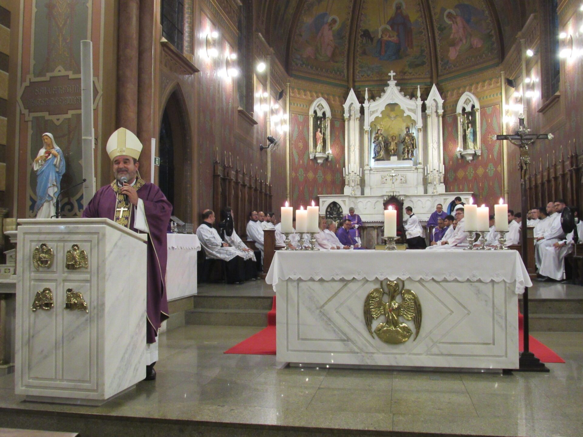 Na noite desta quarta-feira (18), o Bispo Diocesano, Dom Arnaldo Carvalheiro Neto, presidiu a Santa Missa com a bênção e imposição das cinzas, dando início ao tempo da Quaresma. A celebração aconteceu às 19h30, na Catedral Nossa Senhora do Desterro, em Jundiaí, e reuniu centenas de fiéis.