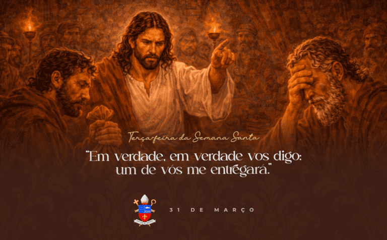 Neste dia, somos convidados a olhar com honestidade para as nossas próprias fraquezas. A Terça-feira Santa nos recorda que o coração humano é vacilante e que, muitas vezes, as nossas promessas esbarram no medo. É um apelo litúrgico à vigilância e à humildade, reconhecendo que só podemos permanecer fiéis ao amor de Cristo na cruz se formos sustentados por Sua graça e misericórdia inesgotáveis.