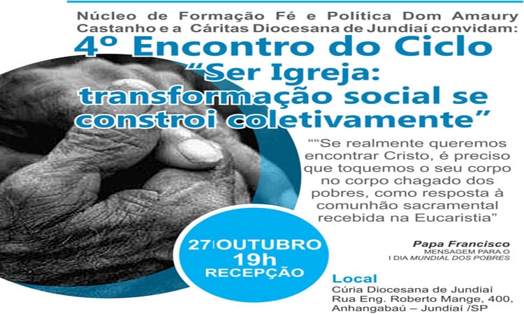 Cáritas Diocesana convida para 4º encontro sobre Doutrina Social da Igreja Dando continuidade ao Ciclo de Encontros sobre Doutrina Social da Igreja, a Cáritas Diocesana de Jundiaí em parceria com o Núcleo de Formação Fé e Política Dom Amaury Castanho promove o 4º Encontro que tem como tema: “Ser Igreja: transformação social se constrói coletivamente”. […]