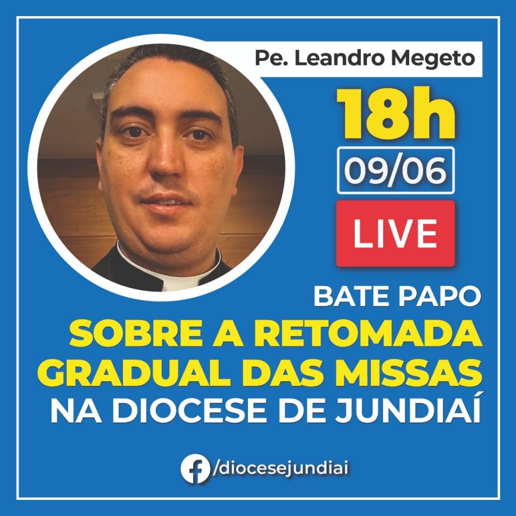 Em uma live transmitida na página do Facebook da Diocese de Jundiaí, em 9 de junho, Padre Leandro Megeto, Coordenador Diocesano da Ação Evangelizadora, tirou dúvidas dos fiéis sobre os Protocolos da retomada gradual da participação presencial dos fiéis nas Missas. Confira: