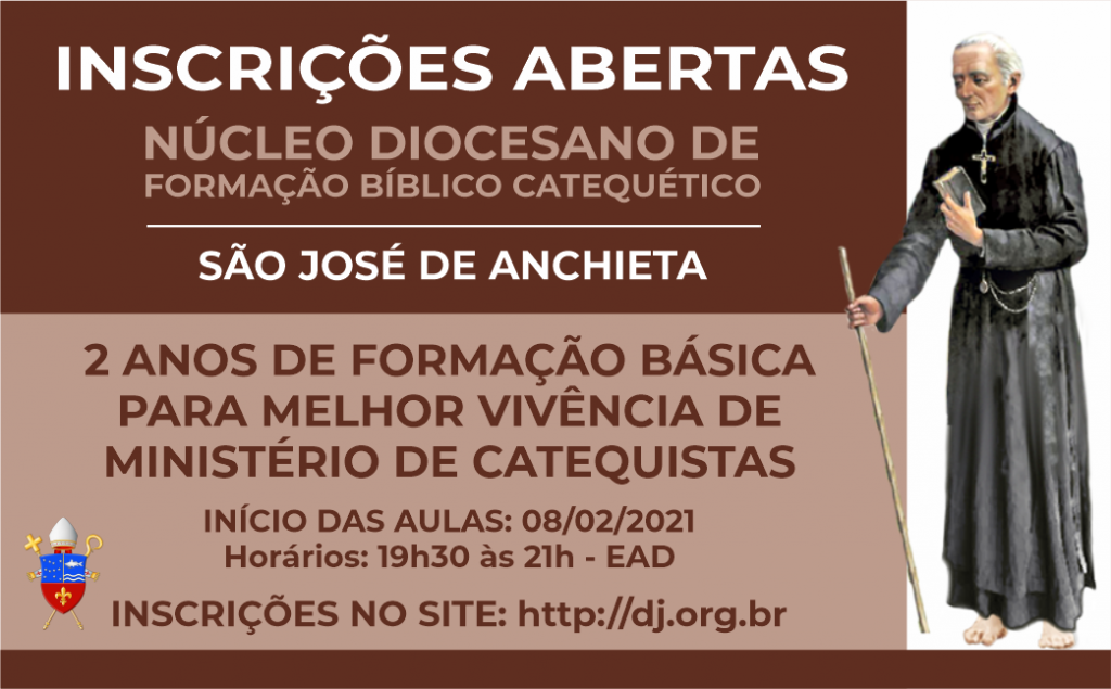 Centro Diocesano de Formação está com inscrições abertas para cursos 2021 – No Núcleo São José de Anchieta, os cursos têm dois anos de duração. As aulas serão a distância e começam em 8 de fevereiro, das 19h30 às 21h. Mais Informações pelos telefones(11) 4583-7474 ou (11) 97211-1720 ou pelo e-mail: centro catequético@dj.org.br Inscrições […]