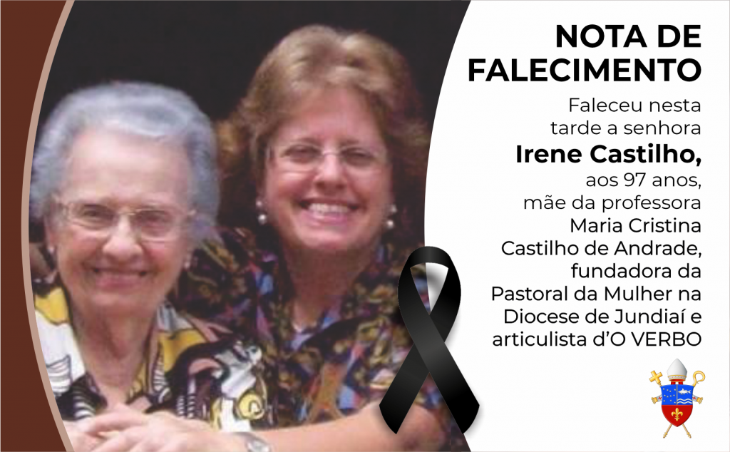 Com pesar, informamos o falecimento, na tarde desta terça-feira, da senhora Irene Portugal Castilho de Andrade, aos 97 anos. Dona Irene é mãe da professora Maria Cristina Castilho de Andrade, fundadora da Pastoral da Mulher na Diocese de Jundiaí e articulista d’O VERBO. O velório será nesta quarta (13), das 7h às 10h, no velório […]