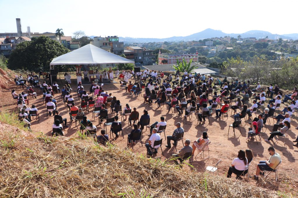 Na festa da padroeira, fiéis celebram no terreno da futura igreja matriz