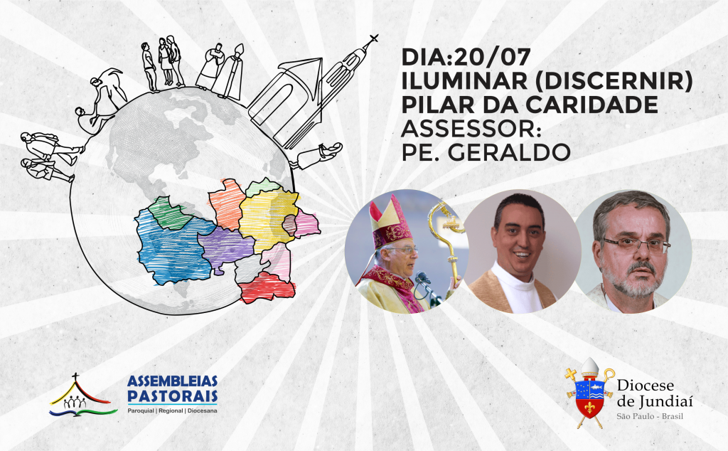 4º Encontro Formativo para os Delegados Paroquiais Acontece hoje (20.07) o 4º Encontro Formativo para os Delegados Paroquiais, em preparação para a 2ª Sessão das Assembleias das Regiões Pastorais da Diocese de Jundiaí. Tema: ILUMINAR (DISCERINIR) – PILAR DA CARIDADE Assessor: Padre Geraldo da Cruz Bicudo de Almeida