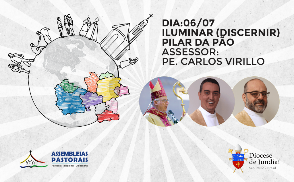 3º Encontro Formativo para os Delegados Paroquiais Acontece hoje (06.07) o 3º Encontro Formativo para os Delegados Paroquiais, em preparação para a 2ª Sessão das Assembleias das Regiões Pastorais da Diocese de Jundiaí. Tema: ILUMINAR (DISCERINIR) – PILAR DO PÃO Assessor: Padre Carlos Virillo