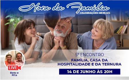Pastoral Familiar convida para o 5º Encontro da Hora da Família, com o tema: “FAMÍLIA, CASA DA HOSPITALIDADE E DA TERNURA”. 14 de junho, às 20h. Casal assessor: Beto e Rita. Para acompanhar, acesse as página oficial da Pastoral familiar da Diocese de Jundiaí, no Facebook.