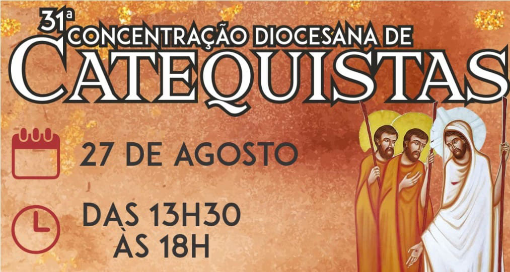 31ª Concentração Diocesana de Catequistas Dia: 27 de agosto de 2022 Horário: das 13h30 às 18h. Local: Paróquia Nossa Senhora Mãe dos Homens e Santo Antônio de Pádua, em Louveira.