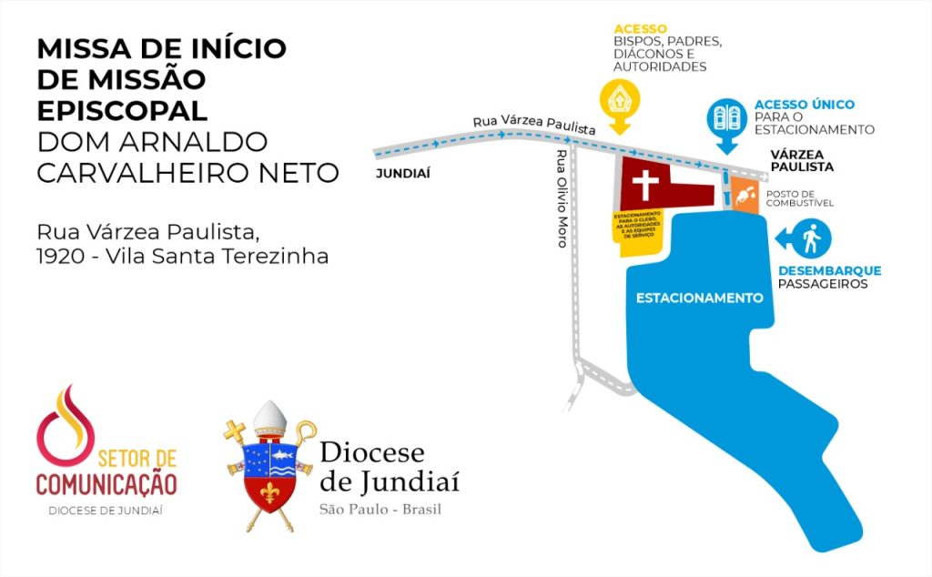 Caros fiéis, diocesanos: Seguem as orientações para o acesso ao Centro de Evangelização Arca da Aliança “Mãe da Divina Providência”, em Várzea Paulista, no dia 13 de agosto, para a missa de início de missão episcopal de Dom Arnaldo Carvalheiro Neto. – Carros, ônibus e vans terão um único acesso ao estacionamento pela travessa localizada […]