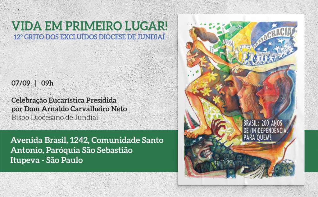12º Grito dos Excluídos 7 de setembro, às 9h, celebração eucarística presidida por Dom Arnaldo Carvalheiro. Local: Comunidade Santo Antônio, Paróquia São Sebastião, Itupeva.