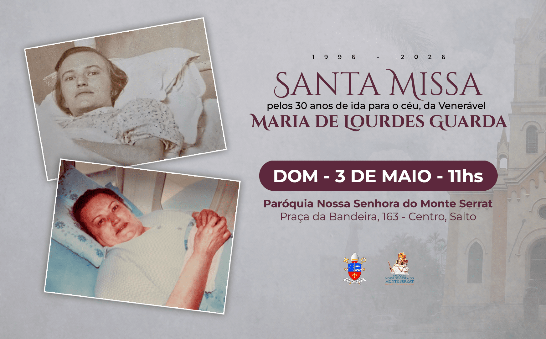 “Aquele que crê, mesmo que morra, viverá.” (Jo 11,25) Com fé e gratidão, a Diocese de Jundiaí recorda os 30 anos de Páscoa definitiva da Venerável Maria de Lourdes Guarda. No dia 3 de maio de 2026, às 11h, todos os fiéis diocesanos são convidados para celebrar a Santa Missa em sua memória na Paróquia […]