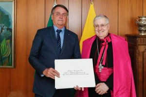 O presidente Jair Bolsonaro recebeu hoje em Brasília as credenciais do novo Núncio Apostolico, Dom Giambattista Diquattro.