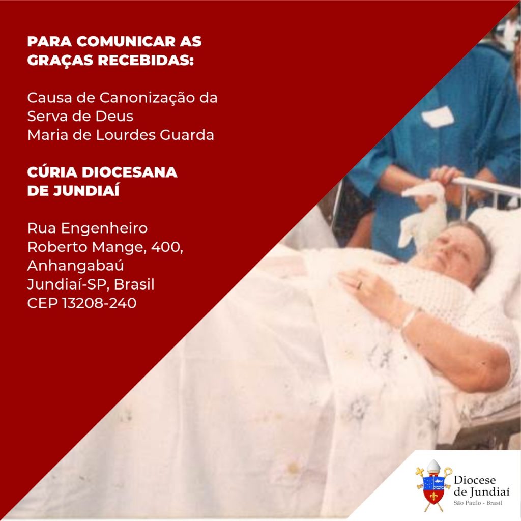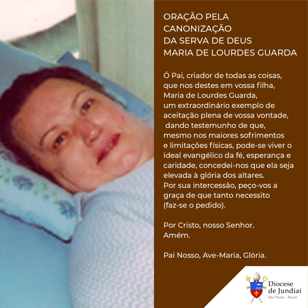 Neste dia 5 de maio de 2021, rezamos pela alma e pela beatificação da Serva de Deus Maria de Lourdes Guarda que há 25 anos fazia sua Páscoa definitiva, falecendo na cidade de Salto, SP, cidade pertencente a Diocese de Jundiaí.
