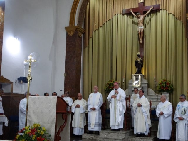O Bispo Diocesano, Dom Vicente Costa, acolheu a assembleia e passou a presidência da missa ao jubilando. Concelebraram os Padres Marcílio Gragefe, Pároco local, Luiz Marin, Wagner Marques, Fernando Augusto Meira e João Batista Carvalho. Os diáconos Permanentes Barcelides Cruchello, José Carlos Pascoal e Edison Silva Palagi auxiliaram.