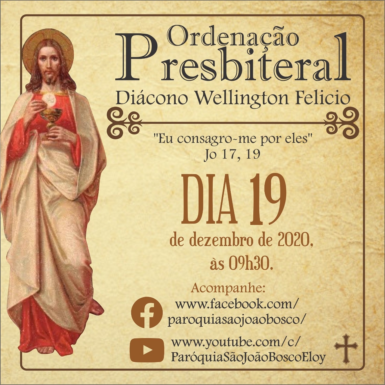 Acompanhe pelas redes sociais da Paróquia São João Bosco.