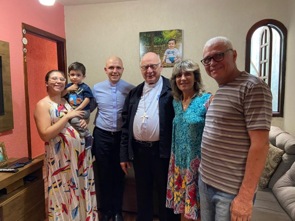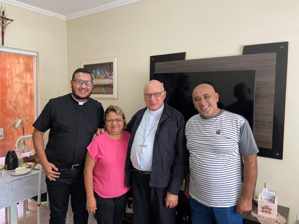 No segundo dia de convivência, Dom Vicente Costa visitou as famílias dos quatro diáconos. Em cada casa, houve um momento de conhecimento de seus pais e irmãos, de partilha da realidade familiar e do processo vocacional de cada um deles. No final, o bispo rezou por todos e abençoou-os.