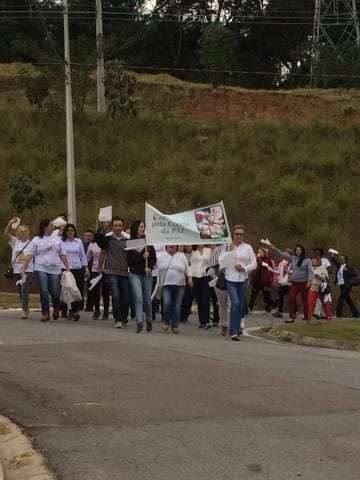 Cerca de 500 pessoas, entre homens e mulheres, crianças e jovens percorreram as ruas do Bairro do Engordadouro exibindo faixas e lenços brancos. Durante o trajeto os participantes rezaram e cantaram.