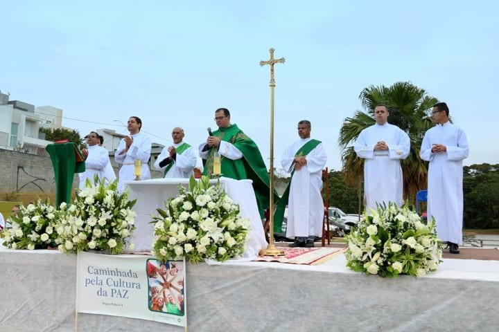 Na chegada ao Parque do Engordadouro, o padre Antonio Carlos dos Santos, Pároco da Paróquia Santa Rita de Cássia presidiu a celebração pela paz e, ao mesmo tempo, promoveu uma melhor conscientização sobre o significado da paz.