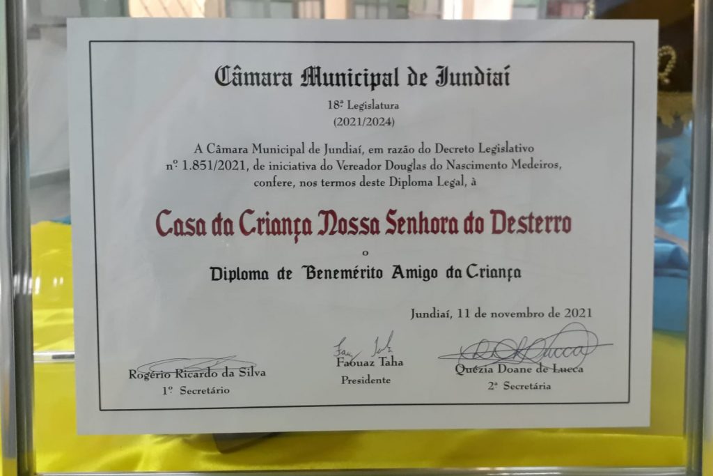 Por sua vez, a Cáritas Diocesana de Jundiaí recebeu o Diploma “Monsenhor Hamilton José Bianchi” de Direitos Humanos. A honraria foi entregue ao Diretor Presidente da Cáritas, Padre Joaquim de Souza Filho, pelo vereador Edicarlos Vieira, de quem partiu a indicação para a premiação.