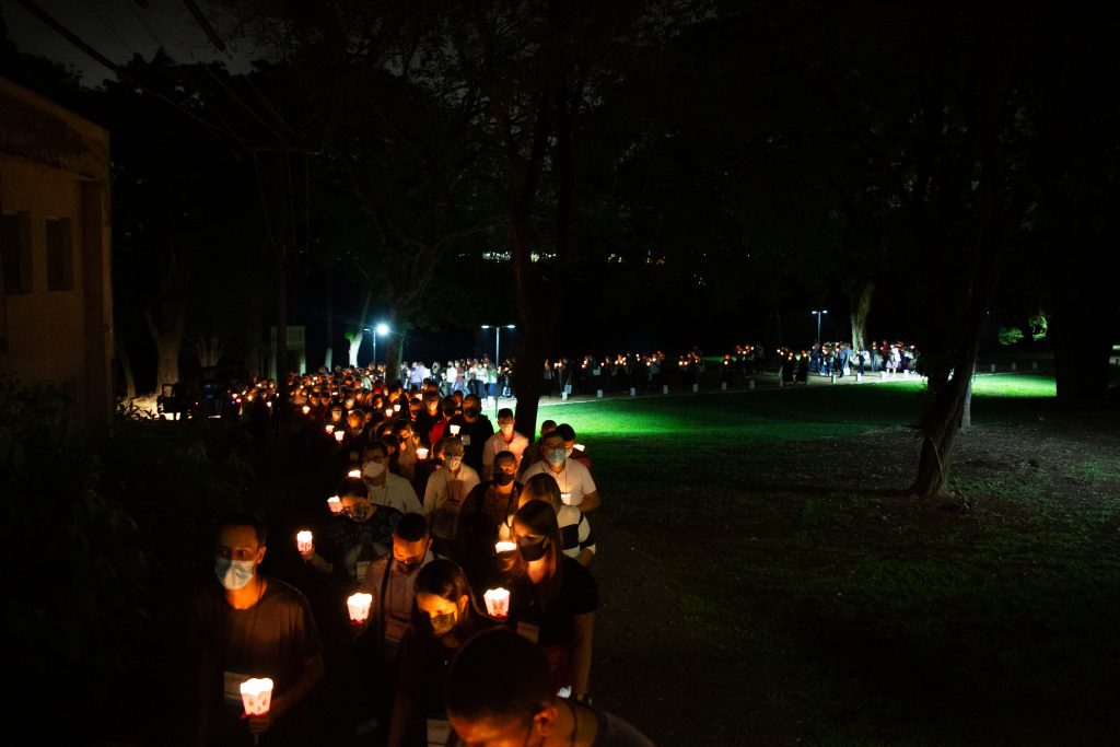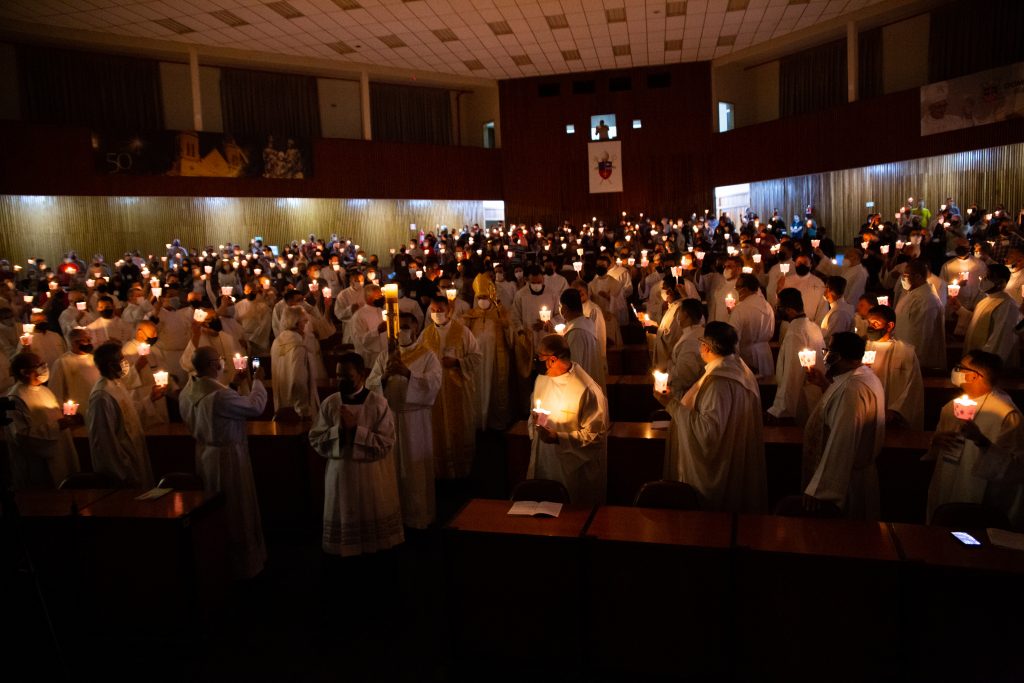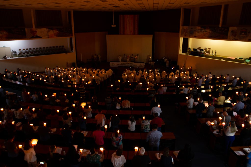 Depois que todos os presentes acenderam as velas, saíram em procissão entoando a Ladainha de Todos os Santos, em direção ao auditório onde ocorrerão as atividades da Assembleia ao longo do final de semana.