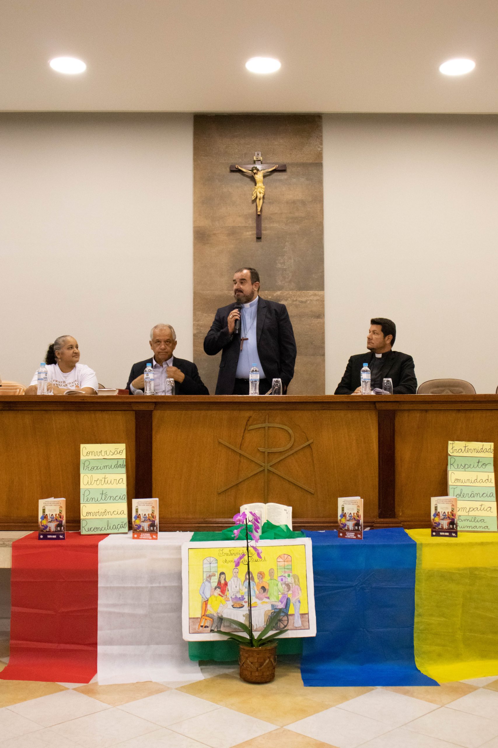 Após fazer um breve resumo do Texto-Base da CF 2024, Padre Antônio Carlos convidou a todos para darem o primeiro passo e começar pela cura das feridas da inimizade e discórdia com a reconciliação nas famílias, nas comunidades e em toda a Igreja no Brasil.