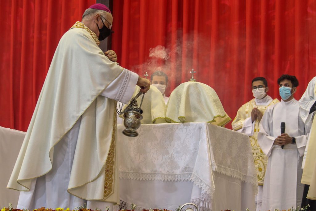 “Vamos agradecer ao Senhor porque ele fez de nós, particularmente nós sacerdotes, os seus ministros para perpetuar o seu sacerdócio em favor da humanidade. Nós, presbíteros, sacerdotes que fomos marcados por um sinal indelével no coração, para que possamos, a partir da ordenação presbiteral, continuarmos a sermos presença viva do Senhor no meio de seu povo”, foi o convite inicial de Dom Vicente.