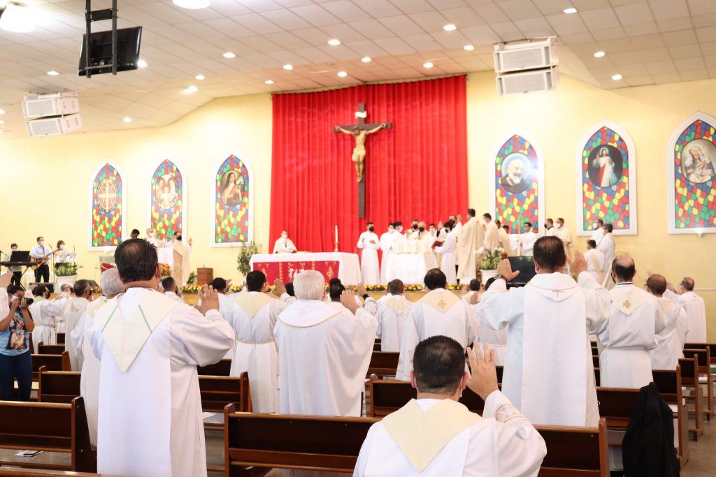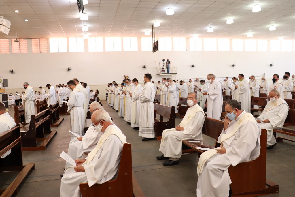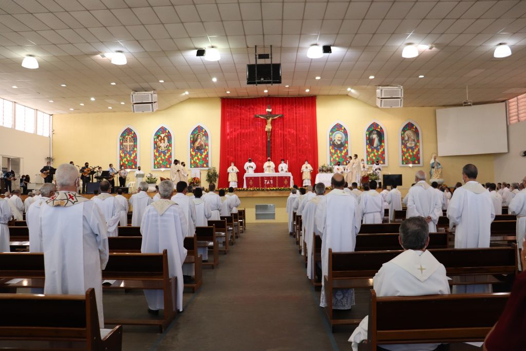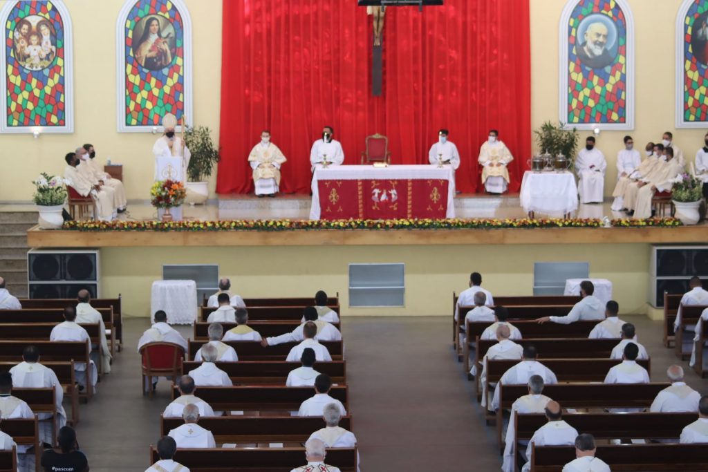 Na manhã de 22 de outubro, quinta-feira, Dom Vicente Costa se reuniu com todo o clero diocesano no Centro de Evangelização Arca da Aliança “Mãe da Divina Providência” (Paróquia Cristo Redentor, cidade de Várzea Paulista) para a Missa do Crisma.