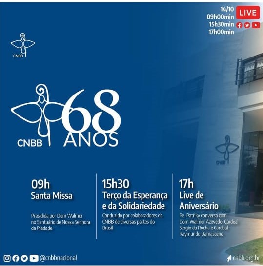 Todos os eventos celebrativos podem ser acompanhados, ao vivo, pelos canais oficiais da CNBB: @cnbbnacional
