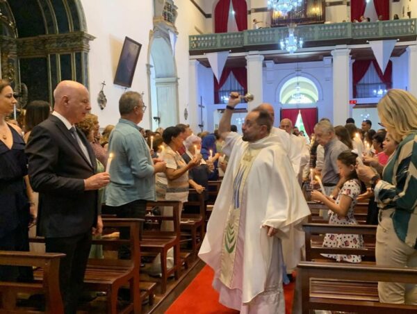 A Santa Missa foi celebrada com o tradicional rito da bênção das velas, que recorda Cristo como luz para iluminar as nações, conforme a tradição litúrgica da Igreja neste dia.