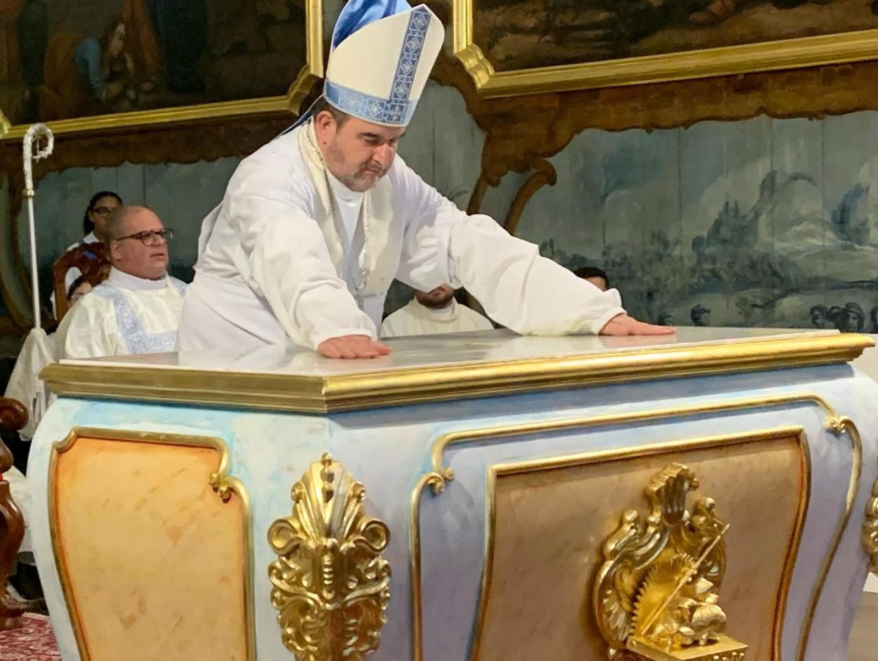 A celebração foi marcada por um momento especial: o rito de dedicação do altar, que expressa a centralidade da Eucaristia na vida da comunidade cristã. O altar, sinal do próprio Cristo, tornou-se espaço definitivamente consagrado para a celebração dos sacramentos e para a oração do povo de Deus.