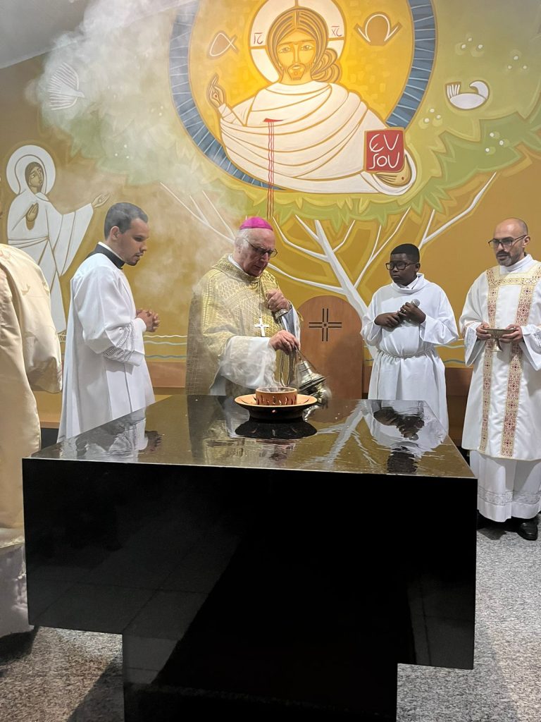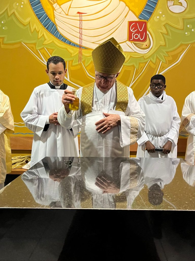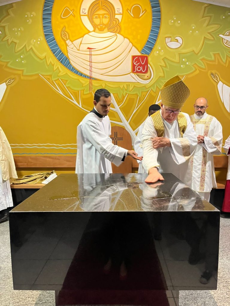 A Dedicação da igreja e do altar ocorreu na presença de muitos fiéis que testemunharam o rito que inclui gestos como a aspersão com água benta sobre o povo, e nas paredes do templo e do altar. Seguiu-se o rito com a prece e unção, das Ladainhas.