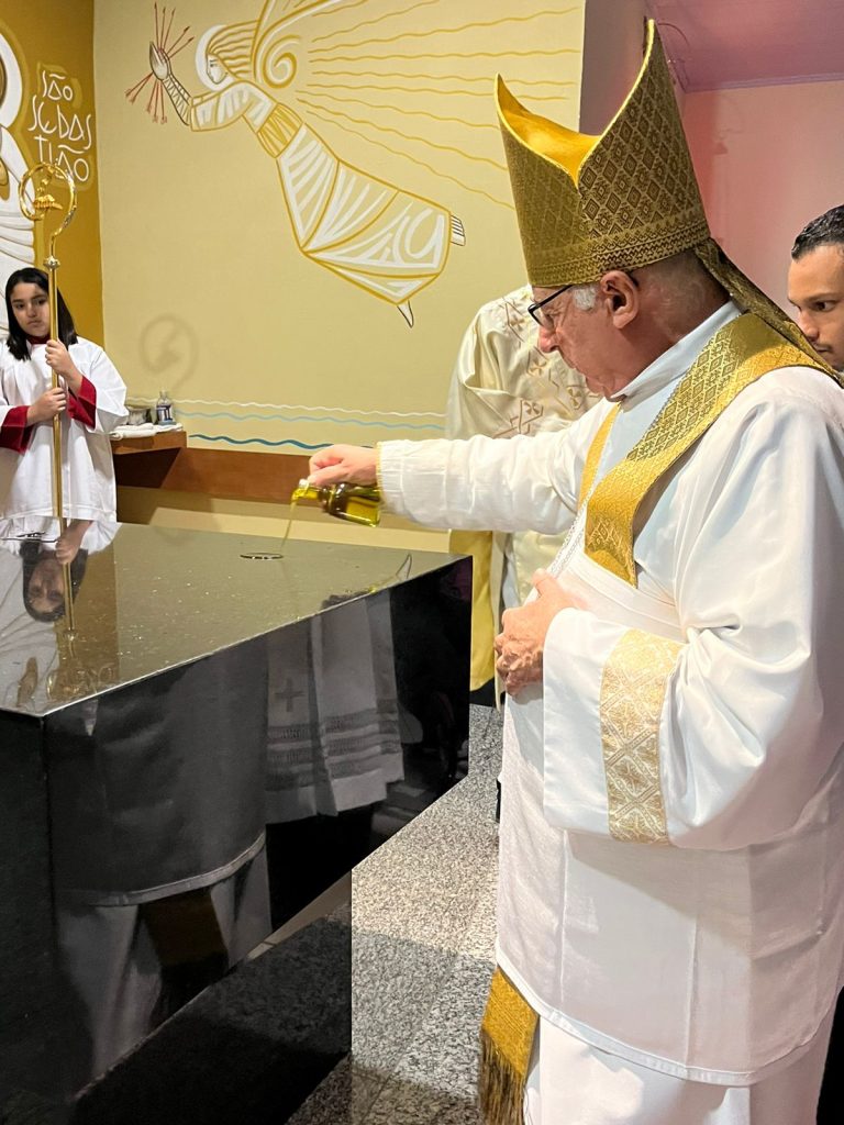 A comunidade surgiu em 2004 e com muito esforço construiu uma pequena capelinha que, em janeiro de 2019, foi destruída pelas fortes chuvas que assolaram o bairro à época. Depois de uma campanha diocesana, o templo foi reconstruído e neste ano conquistou mobiliário e um belo ícone do artista sacro Lúcio Américo. Assim, depois de muito esforço e emoção, dedicou seu altar e Templo ao Senhor. A cerimônia solene aconteceu durante a Santa missa, às 19h30, e foi concelebrada pelo pároco, Pe. Erickson Ramos da Silva.