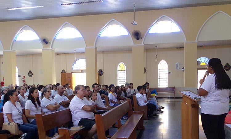 Os participantes ouviram uma palestra com o tema “A ação dos leigos em Missão” e fizeram grupos de trabalho para dar sugestões e assumir compromissos para a caminhada missionária.