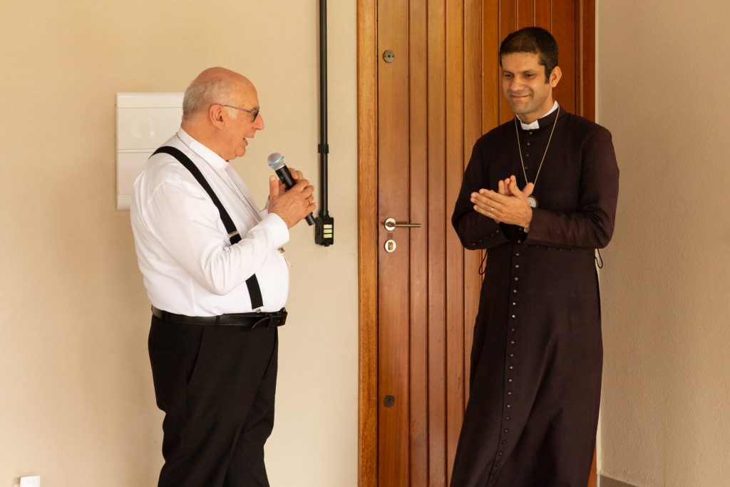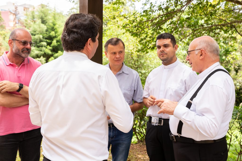 Os participantes, em nome da Diocese de Jundiaí, abraçaram Dom Vicente Costa e rezaram pedindo ao Bom Deus que abençoe e proteja nosso Bispo.