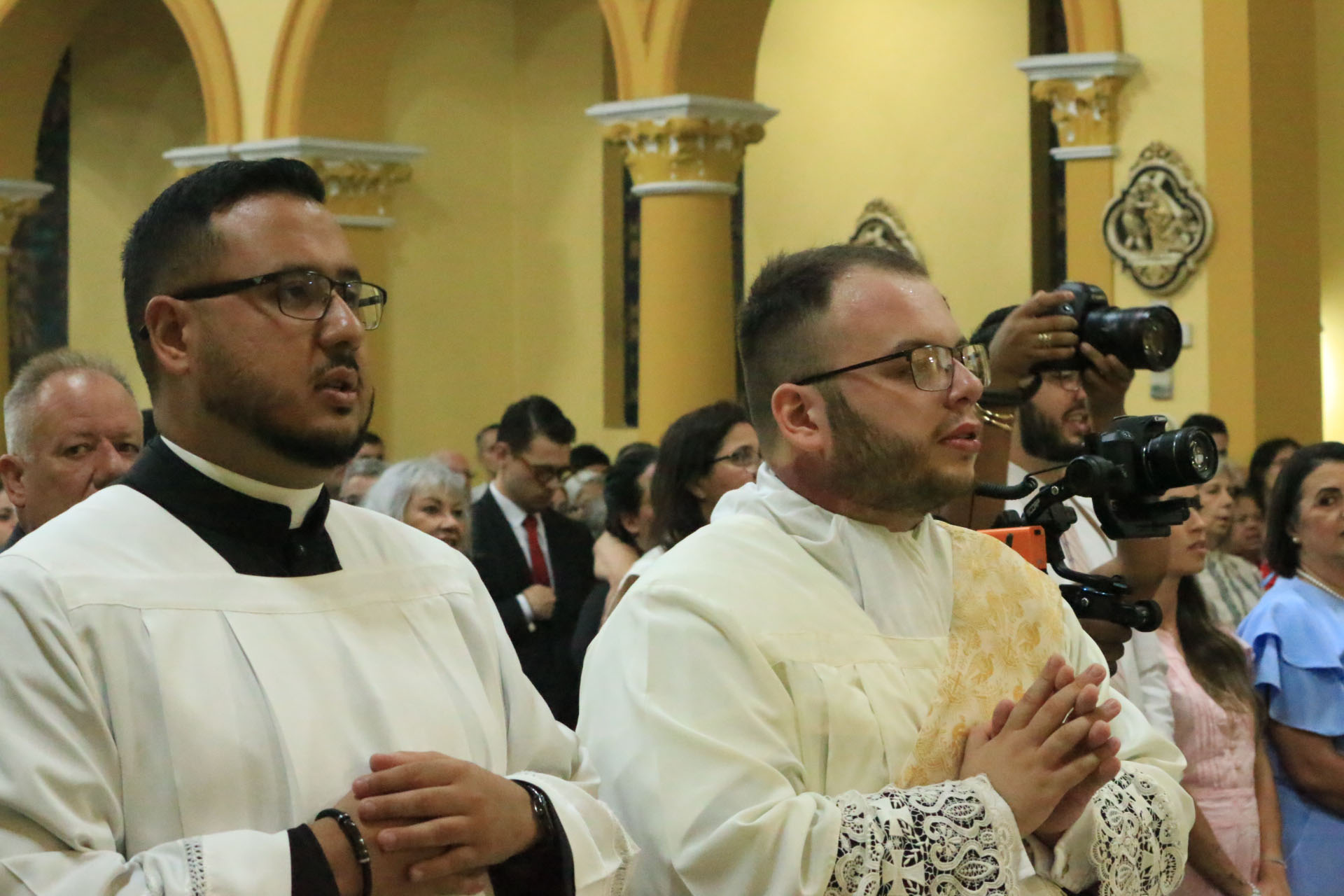Familiares e amigos dos ordenandos e grande número de fiéis, além de padres, diáconos, religiosos (as) e seminaristas testemunharam a alegria da Igreja Particular de Jundiaí em receber dois novos pastores, servidores do Evangelho.