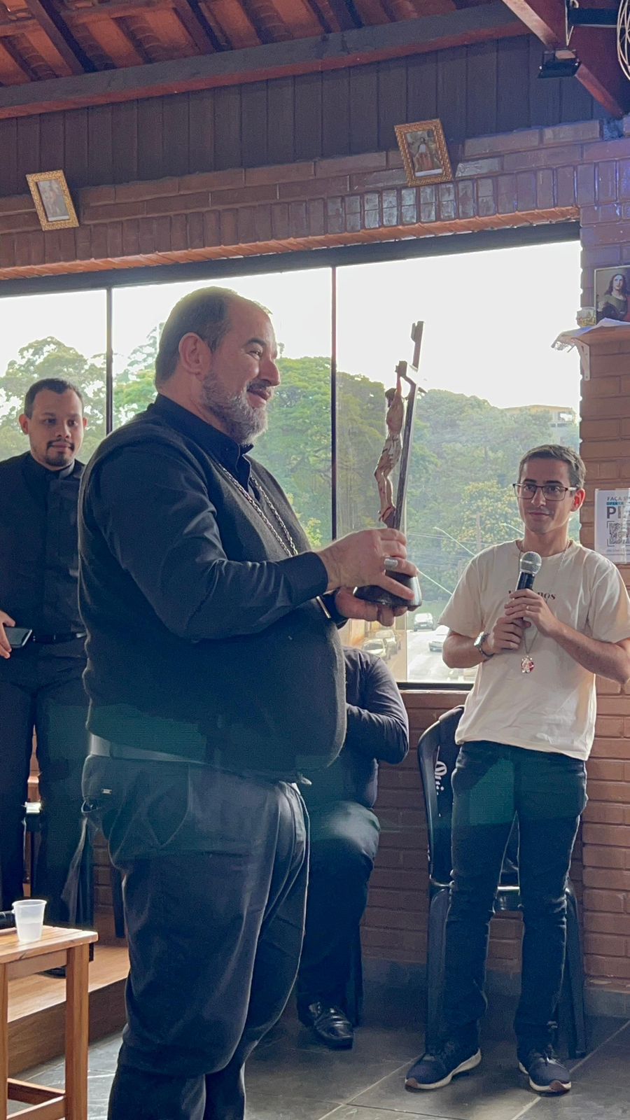 Logo após, visitou a Comunidade de Aliança Chaga de Amor. Lá conheceu um pouco da história da comunidade que completou recentemente (em 20.05) 7 anos de fundação. Conheceu o carisma e o processo formativo da comunidade, assim como testemunhos dos membros e vocacionados.