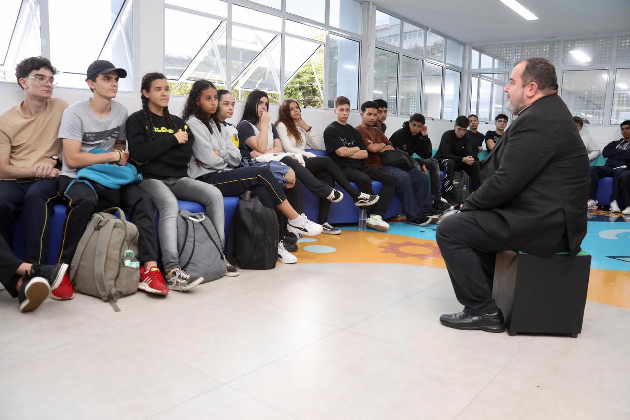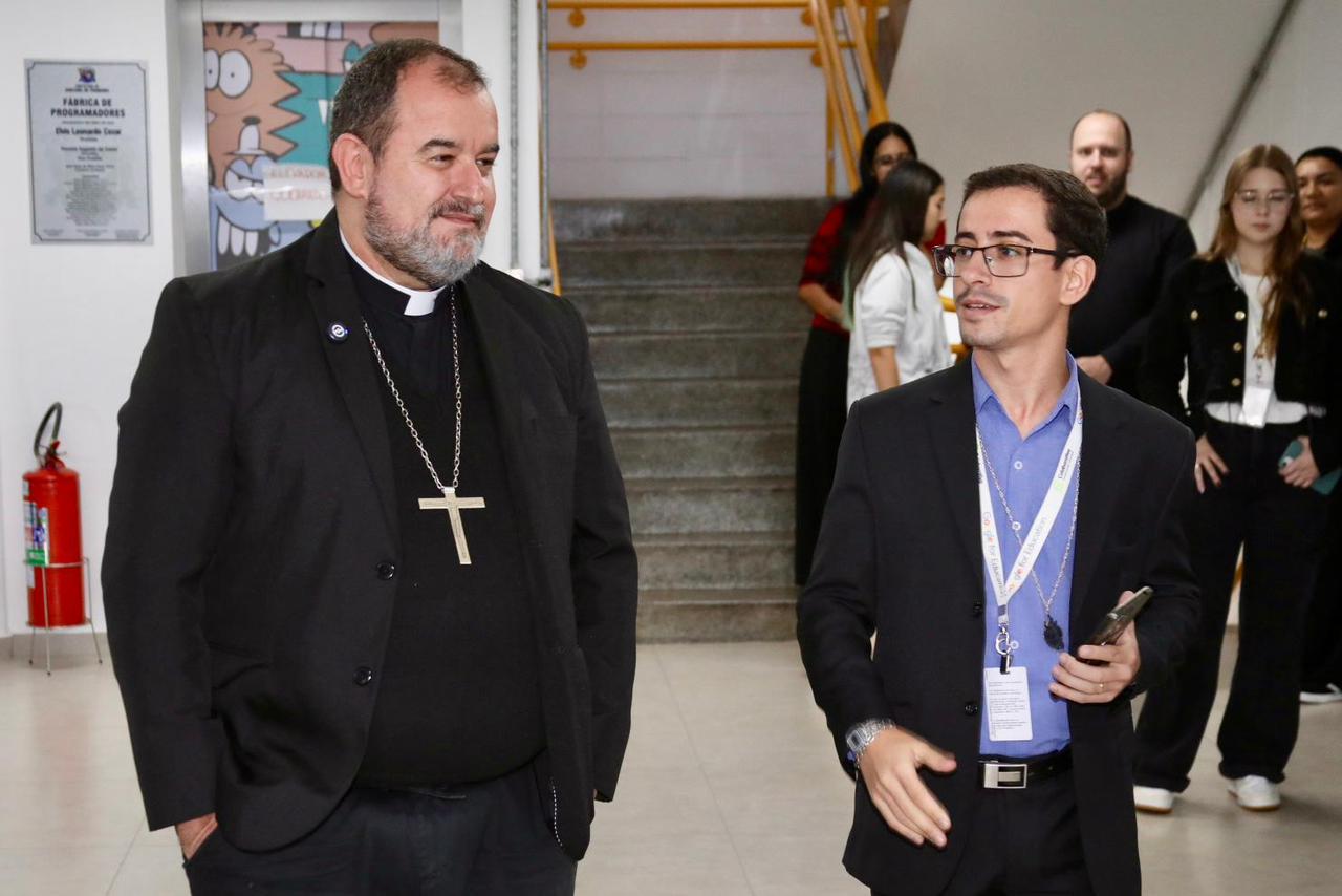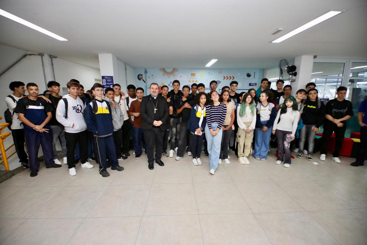 Na parte da Tarde, Dom Arnaldo visitou a Escola “Fábrica de Programadores” um novo projeto da prefeitura para os alunos do Ensino Médio, lá ele partilhou com os jovens estudantes sobre a tecnologia e a abrangência das profissões.
