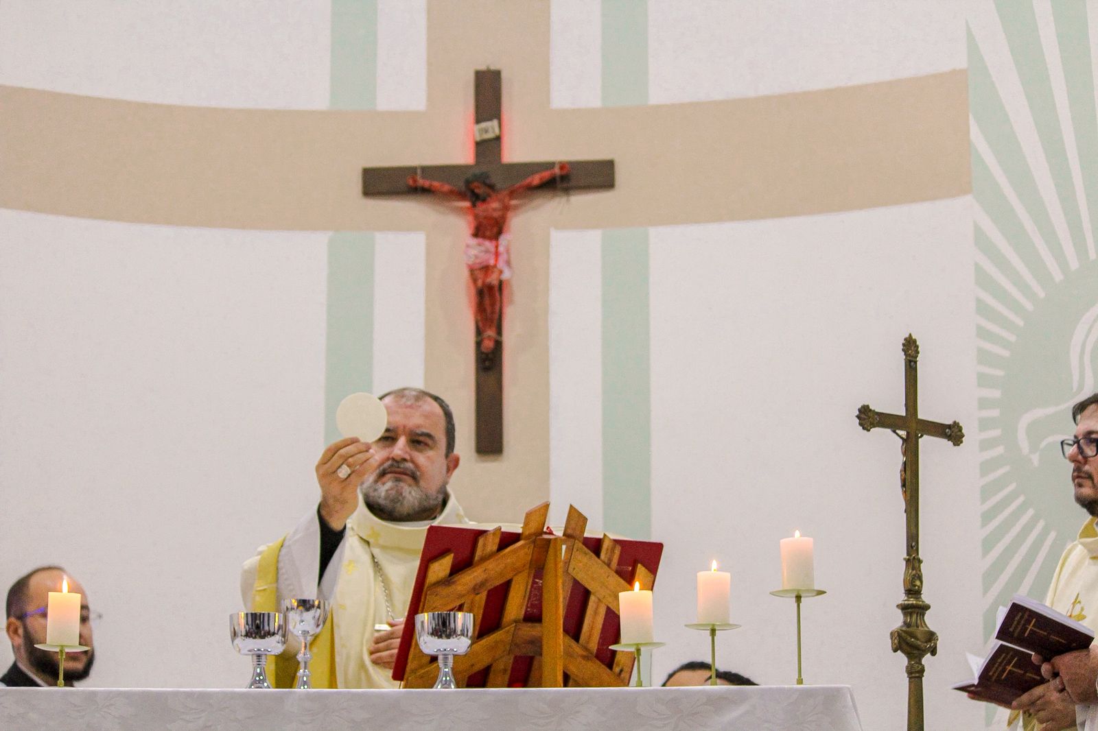 Encerrando as atividades desse dia, o bispo presidiu a Missa na Capela Nossa Senhora Aparecida