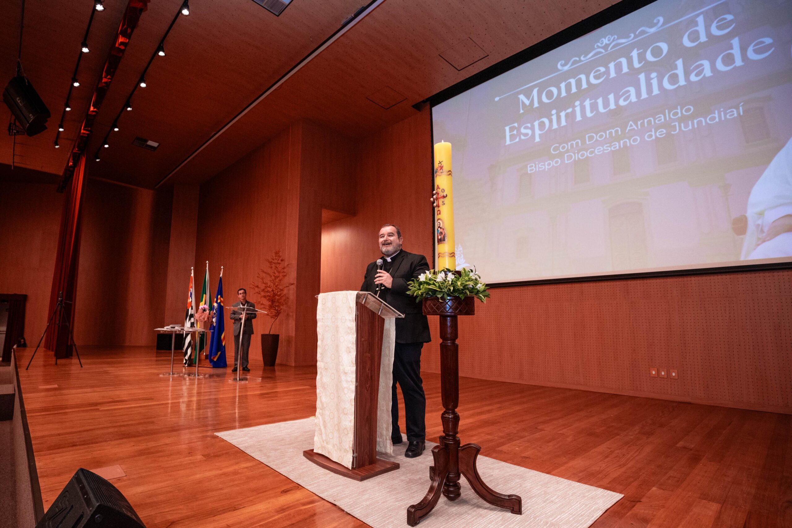 Na sequência, o bispo reuniu-se com as autoridades civis da cidade, Prefeito Elvis Cezar e Vice-Prefeito Vicente, seguindo para um momento de Espiritualidade com os servidores públicos no auditório da Prefeitura.