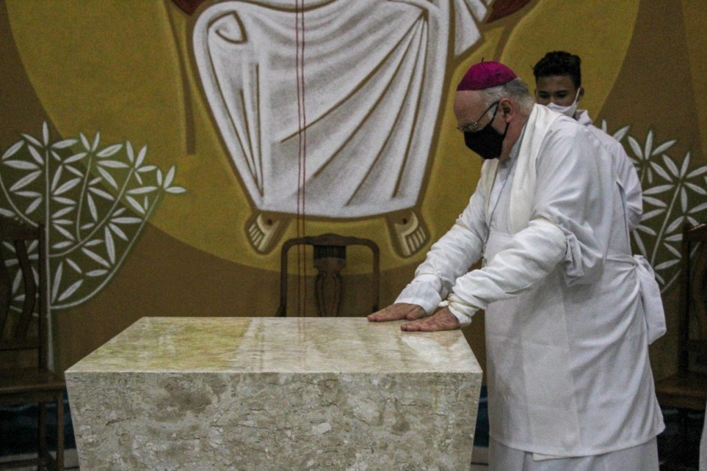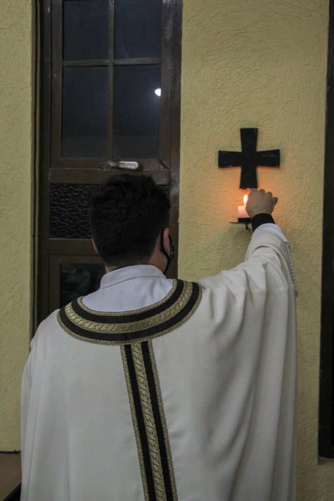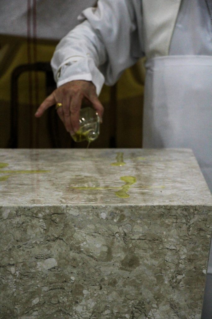 A aspersão de água benta, a unção do altar e das cruzes, o incenso que queima, a vela acesa são partes do rito de Dedicação que recordam que somos templos do Senhor, ungidos e iluminados para ser luz no mundo.
