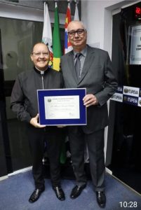 O Bispo Emérito de Jundiaí, Dom Vicente Costa, e o Pe. Marcos Adriano Paulino, Pároco da Paróquia São Sebastião, são o mais novos cidadãos itupevenses.