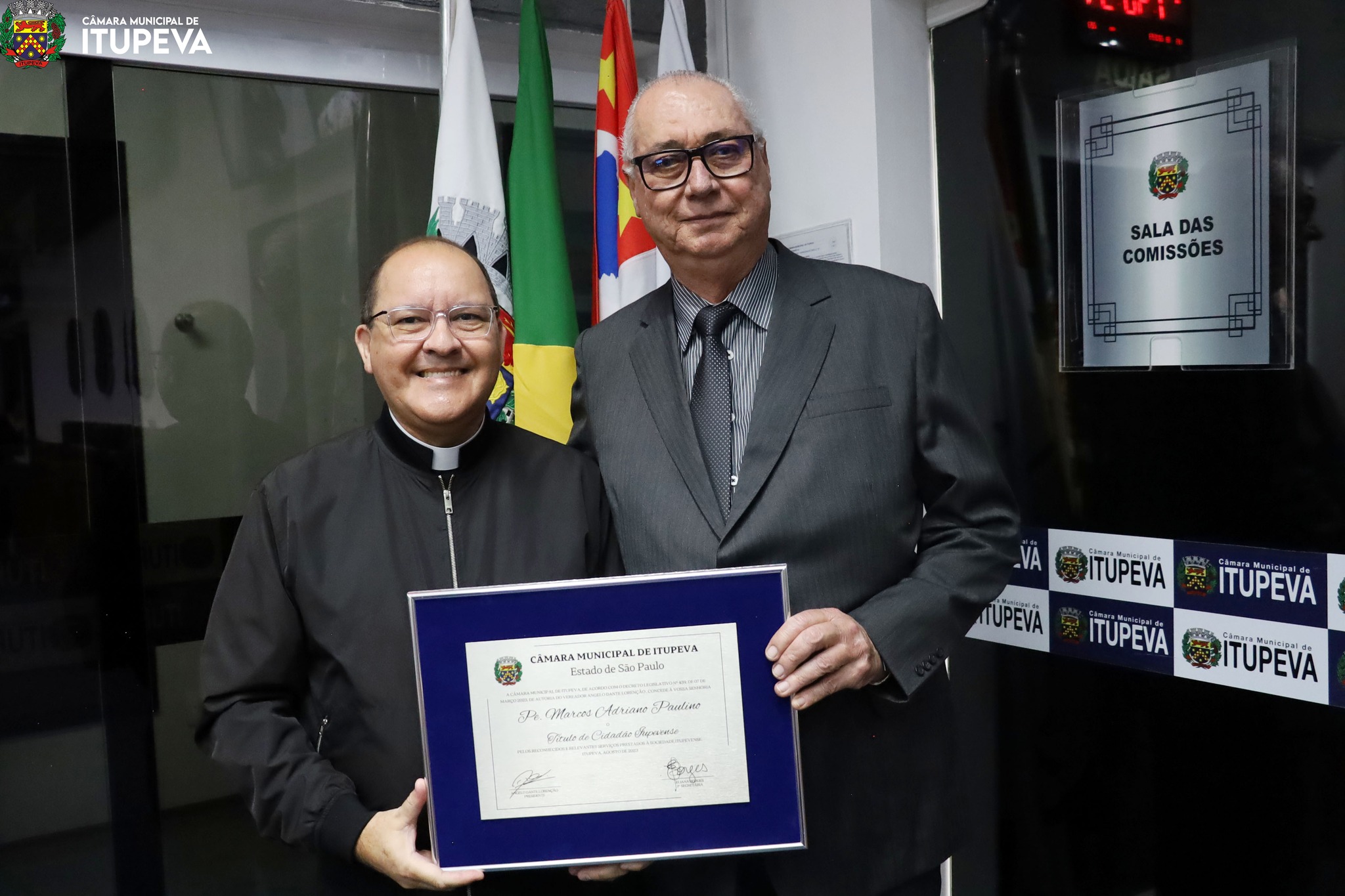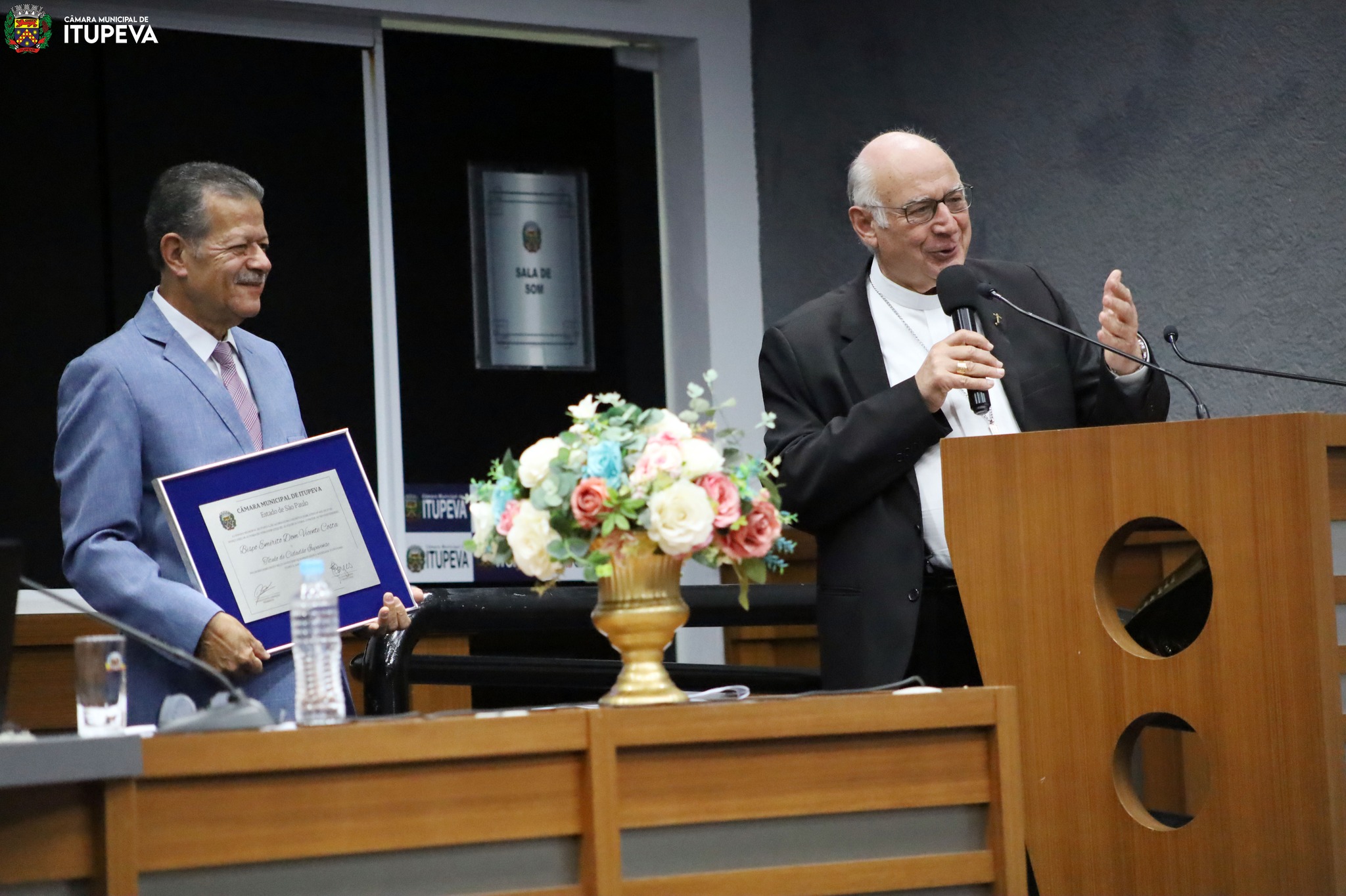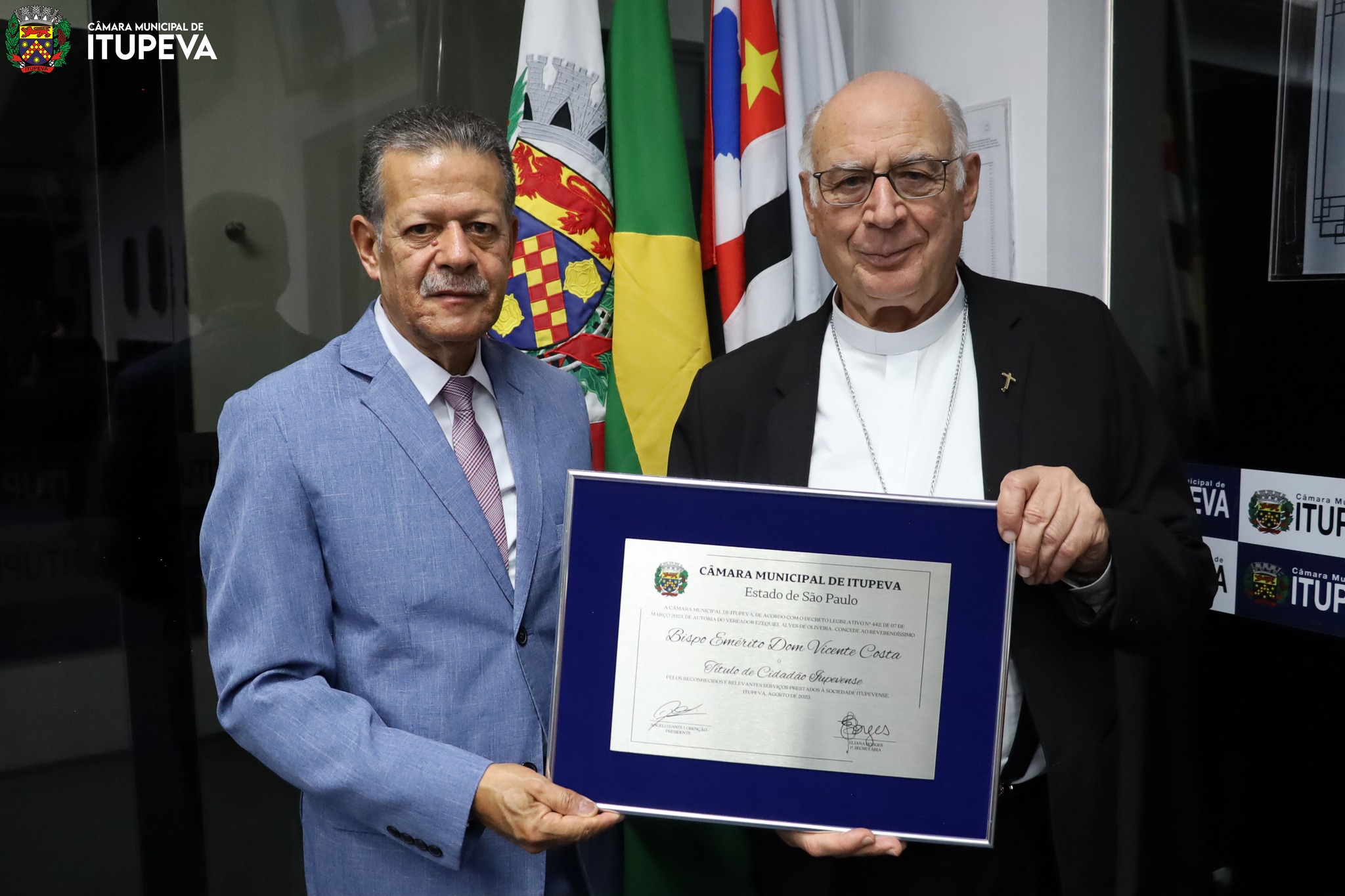 O Bispo Emérito de Jundiaí, Dom Vicente Costa, e o Pe. Marcos Adriano Paulino, Pároco da Paróquia São Sebastião, são o mais novos cidadãos itupevenses.