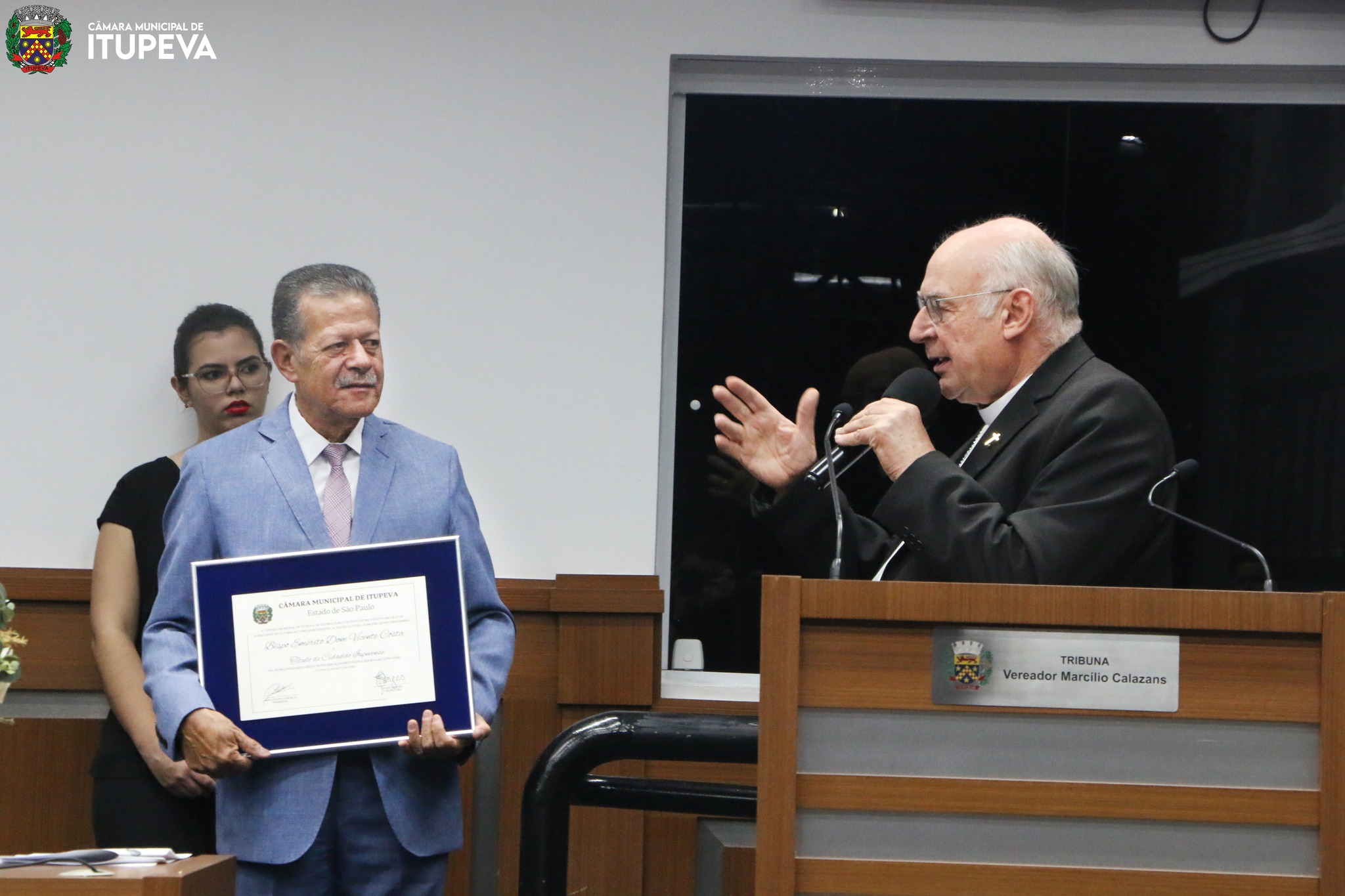 Em sessão solene realizada na Câmara Municipal de Itupeva, no último dia 18 de agosto, Dom Vicente e Pe. Marcos Adriano foram homenageados em reconhecimento pelos relevantes serviços prestados à sociedade itupevense.
