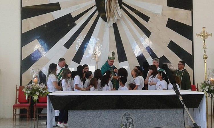 Na Missa de Encerramento da Visita Pastoral, o coral “Pequenos Adoradores”, formado pelas crianças, fez uma apresentação especial em agradecimento a Dom Vicente e em ação de graças a Deus pela presença de Cristo no meio da comunidade, manifestada na pessoa do Bispo Diocesano.