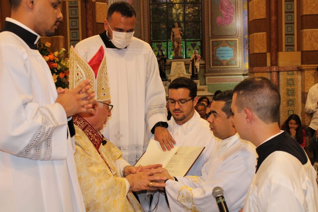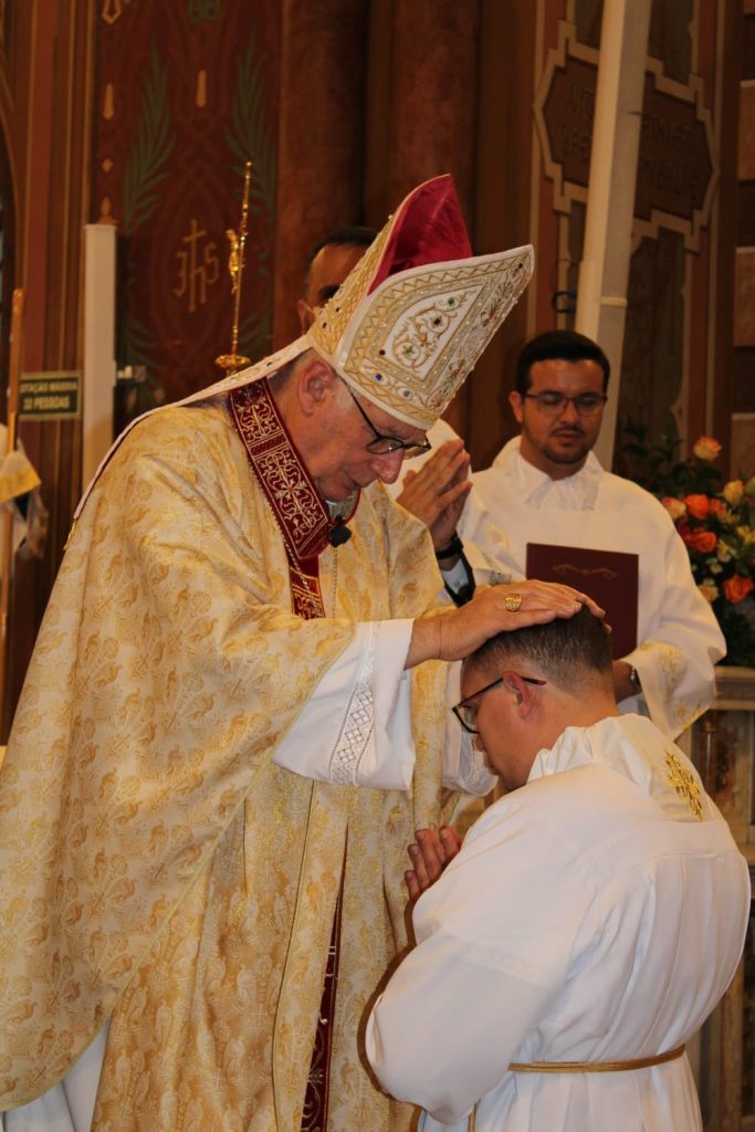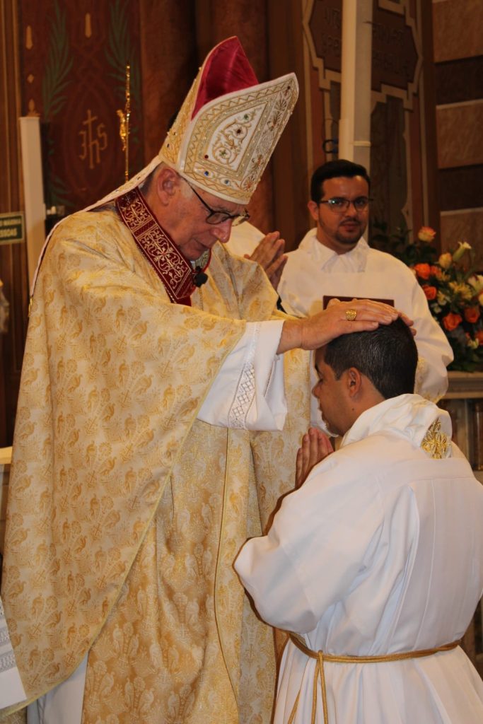Com as mãos unidas às do presidente da Celebração, eles fazem o juramento de obediência ao Pastor da Igreja Particular. Momento substancial é quando recebem a imposição das mãos do Bispo que intercede por eles, pedindo o Espírito Santo com os dons necessários para exercer o ministério.
