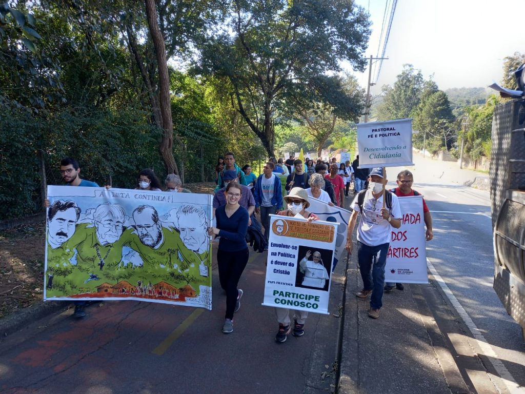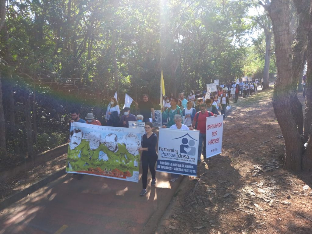 A IX Caminhada dos Mártires realizada no último sábado, 9 de julho, em Jundiaí, foi, mais uma vez, momento de viver a experiência de se colocar à caminho, em romaria. Neste dia, após a Caminhada, que aconteceu na área de amortecimento de impactos ambientais da Serra do Japi, os participantes refletiram sobre o tema “Em defesa da casa comum por uma ecologia integral”, por meio de mensagens de protesto em cartazes, cânticos e orações.