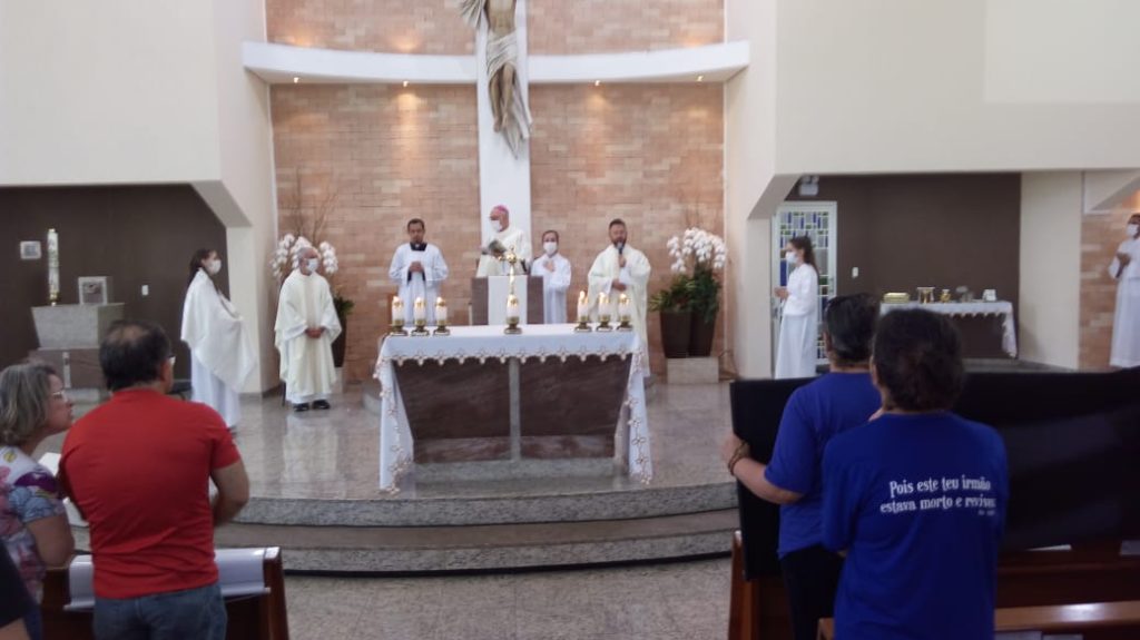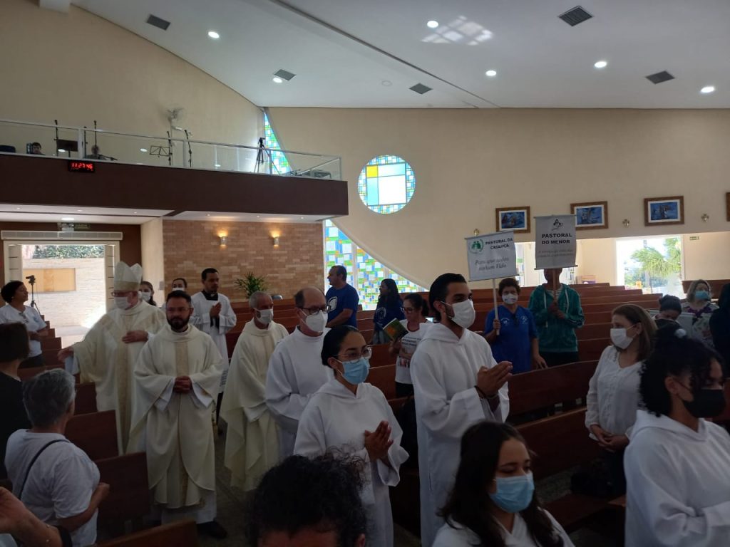 Ao alcançarem as dependências da Paróquia São João Bosco, no Parque Eloy Chaves, Dom Vicente Costa presidiu a Santa Missa.
