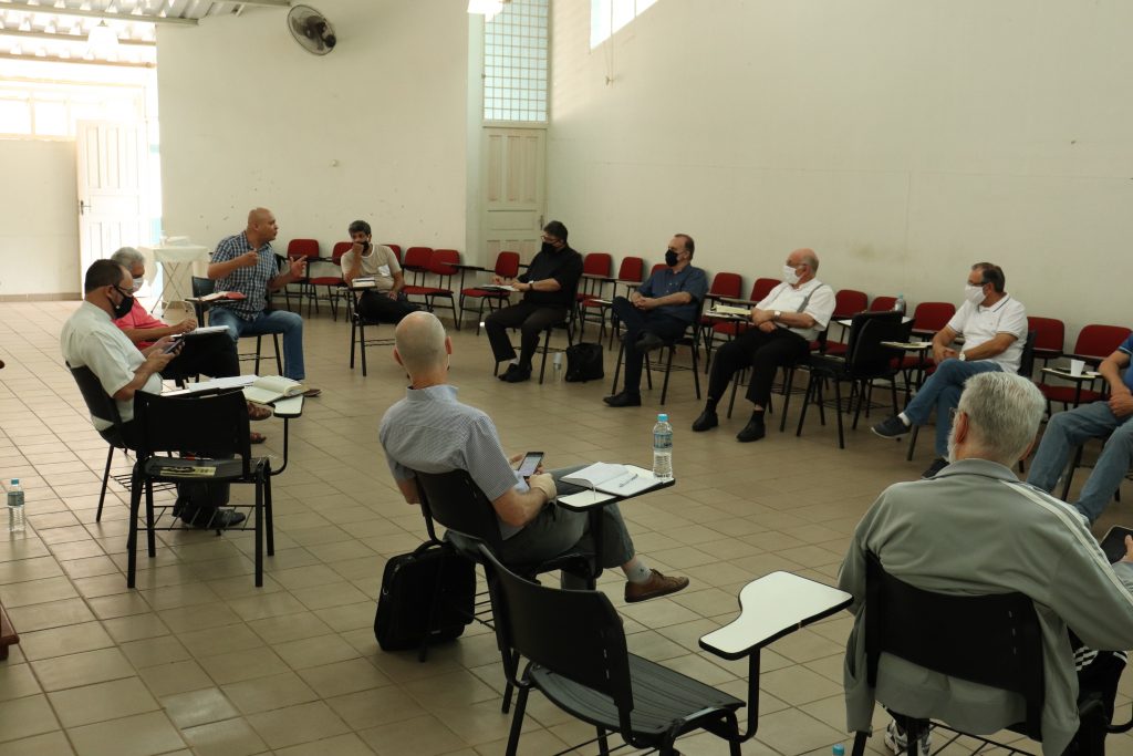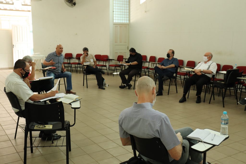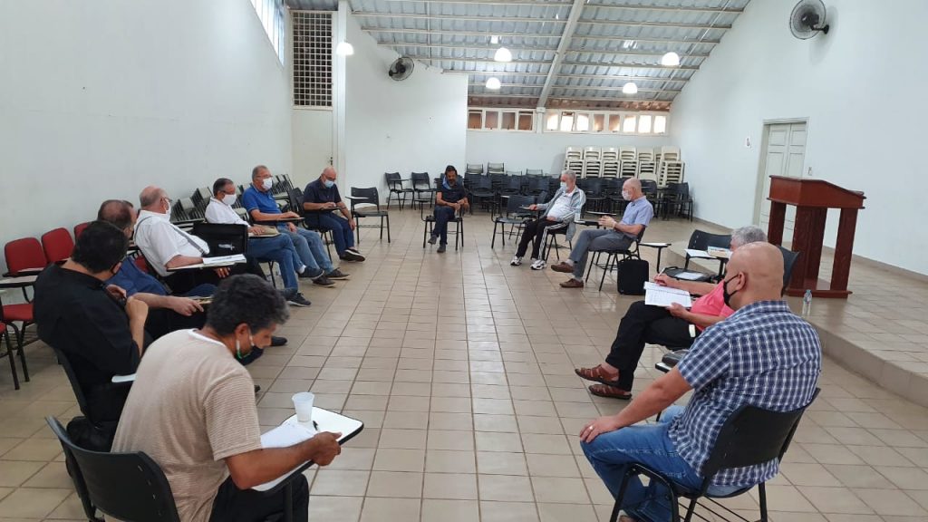 O Bispo Diocesano, Dom Vicente Costa, reuniu-se na manhã desta quinta-feira, 8 de outubro, com Padres, Diáconos e Pastores, em uma das salas da Paróquia Santo Antônio. Distantes uns dos outros e usando máscaras, atendendo às orientações das autoridades sanitárias, a reunião contou com momentos de oração e reflexão e da palavra de Deus e momento de partilha.