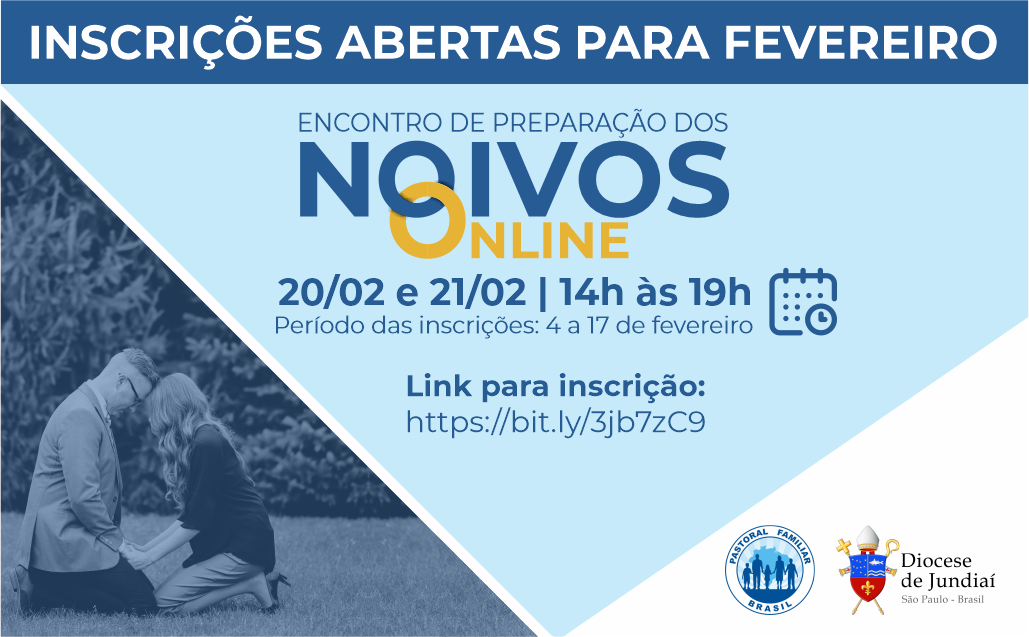 A Pastoral Familiar da Diocese de Jundiaí promove o encontro de Preparação de Noivos que acontecerá nos dias 20 e 21 de fevereiro, de forma virtual. Esta preparação tem validade até fevereiro de 2022.