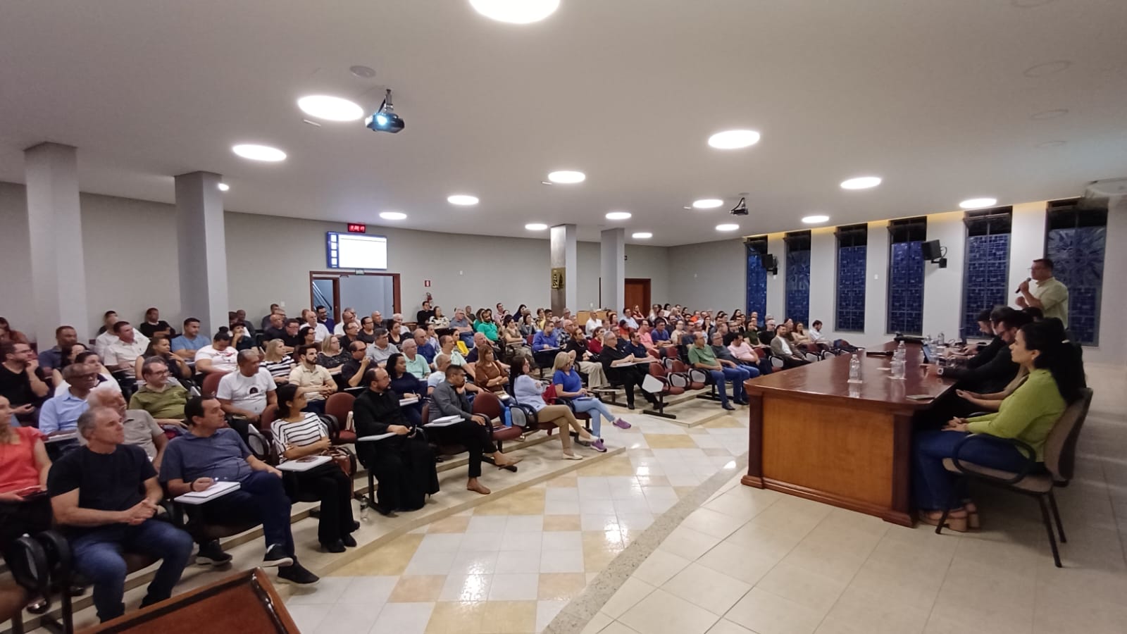Na noite do último dia 5 de novembro, o Anfiteatro Pio XII acolheu o Encontro Diocesano de Patrimônio. O momento formativo reuniu párocos, diáconos, secretários administrativos, membros dos Conselhos Paroquiais de Economia e Administração, bem como voluntários que colaboram na gestão patrimonial das comunidades.