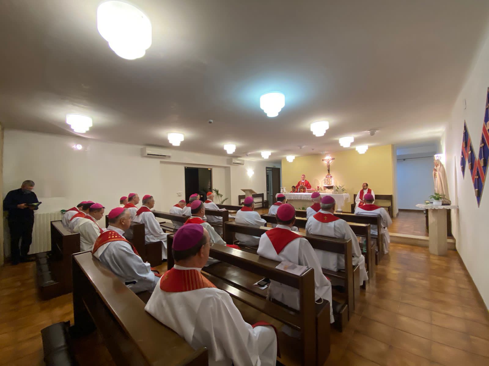 A agenda dos bispos de ontem, dia 20, foi concluída com um momento de oração, jantar e reunião no Pontifício Colégio Pio Brasileiro (PCPB), espaço em Roma dedicado aos estudos e aprimoramento intelectual de padres do Brasil. Confira algumas imagens da celebração de hoje e da programação da noite de ontem.
